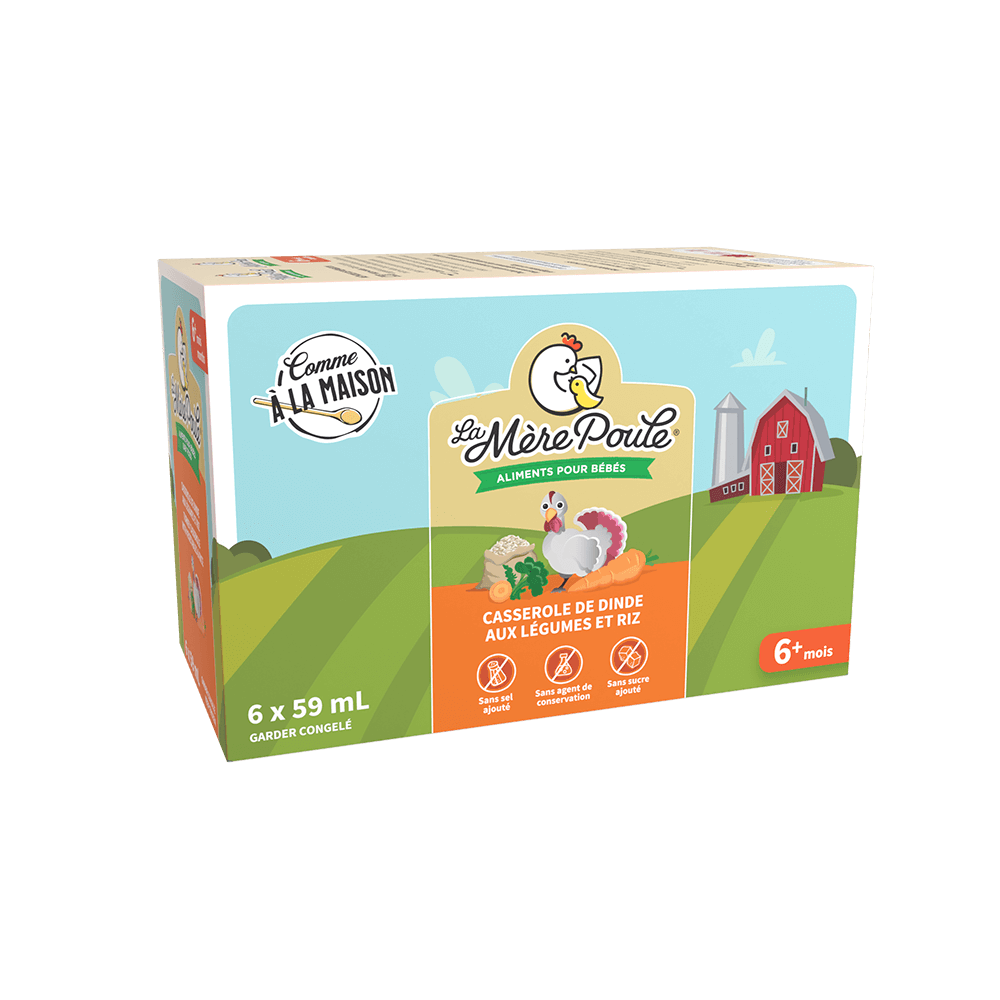 RepasUn mélange exquis de dinde, de légumes et de riz pour donner de l’énergie! Le riz qui, comme le maïs, est exempt de gluten, est une céréale qui fournit des glucides, principale source d’énergie du corps humain. Il s’allie ici à la dinde, une volaille qui fournit des protéines, du fer, du potassium et de la vitamine B12. La B12 contribue à la formation des globules rouges dans le sang et participe à l’entretien des cellules qui fabriquent les os.
